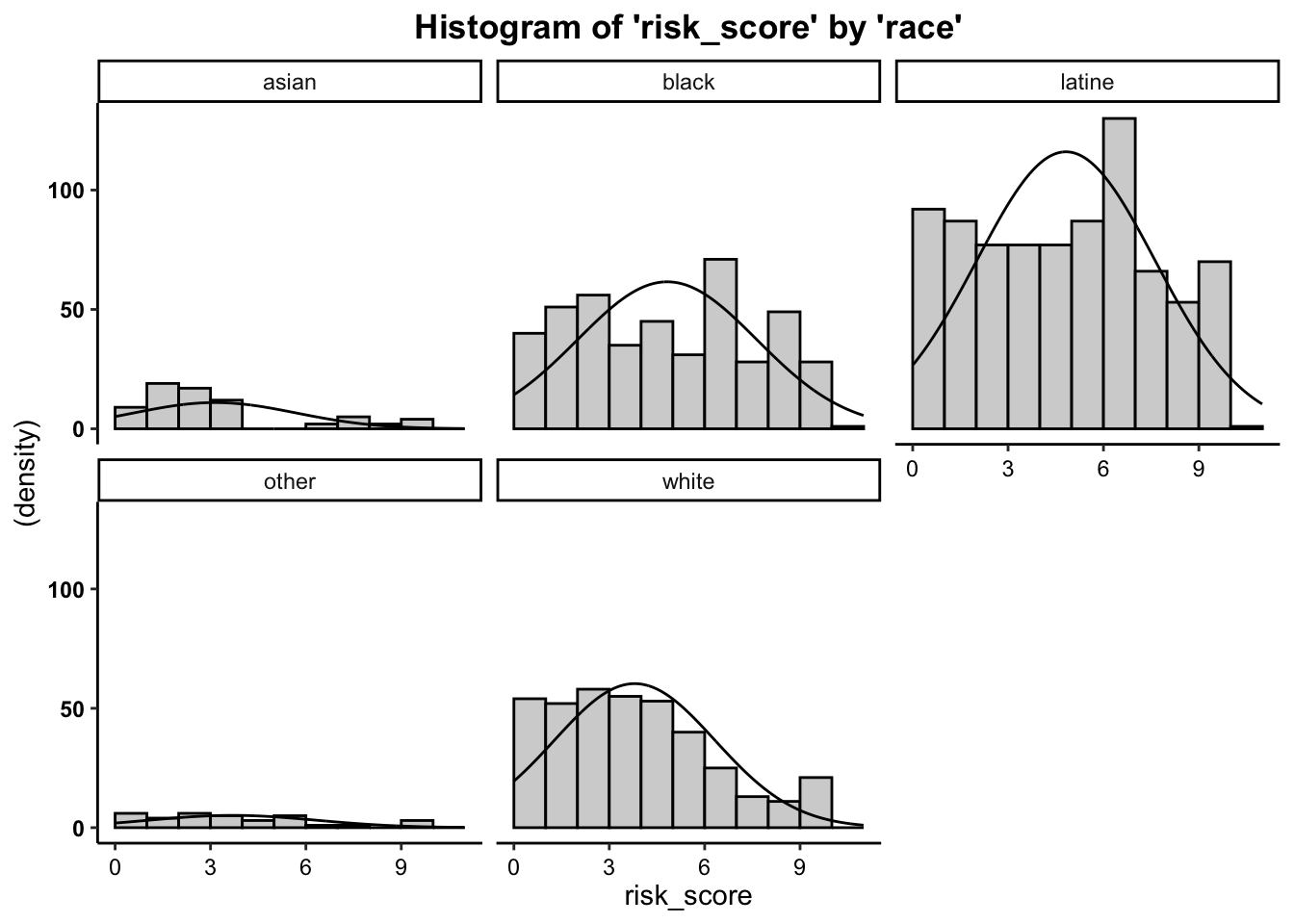 risk_score) by race of the defendant