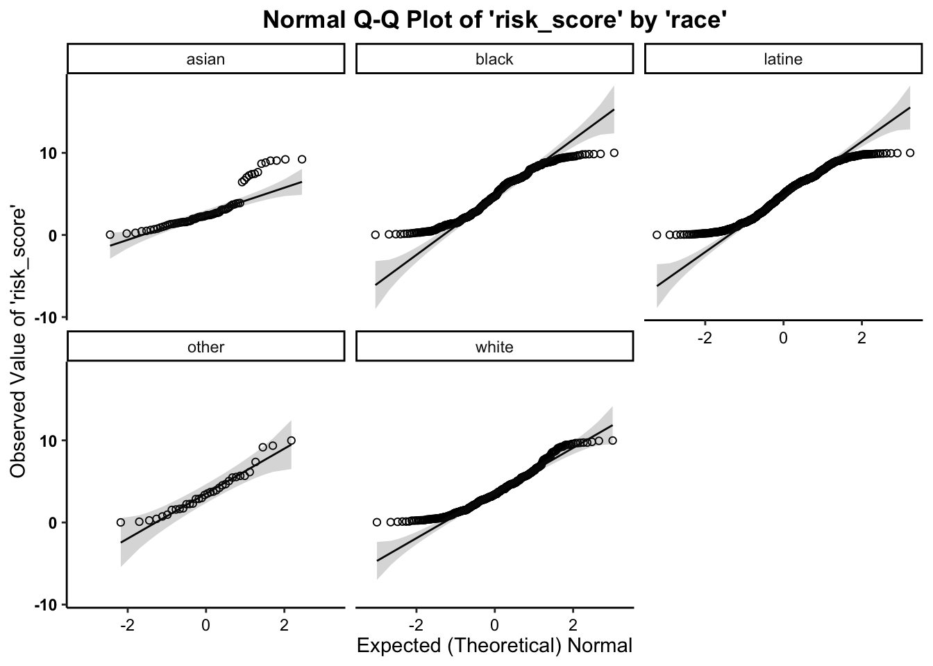 We assess normality an break this plot out by a grouping variable.
